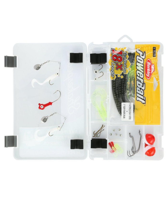 Avec l'ensemble canne et moulinet Shakespeare® Catch More Fish® Lake Pond, les pêcheurs auront tout le nécessaire pour une journée réussie au bord de l'eau. Le moulinet est pré-rempli de fil Stren®, vous évitant ainsi la corvée du bobinage manuel. Pour un transport et un rangement faciles, la canne est dotée d'un système de sangles élastiques pliables, et la boîte à pêche comprend un porte-canne intégré. À l'intérieur, la boîte à pêche contient un assortiment idéal d'articles de pêche et d'appâts, dont les célèbres Berkley® Gulp!®, pour que les pêcheurs soient parfaitement équipés pour leur prochaine sortie de pêche.