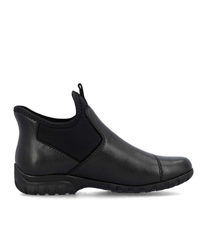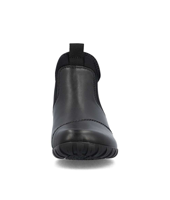L'association d'une tige en cuir noir et de pièces textiles, ornées de surpiqûres, confère à ces bottines RIEKER un look moderne et pratique. Grâce à leur revêtement imperméable, elles sont idéales même par mauvais temps. Faciles à enfiler, elles sont fabriquées avec une matière souple et un talon indéformable, qui permet un enfilage rapide dans la semelle intérieure amovible et la doublure confortable. La semelle dotée d'une technologie d'absorption des chocs assure un confort optimal à chaque pas. Des chaussures fiables pour tous les jours, alliant confort et design intemporel, faciles à assortir avec vos vêtements.