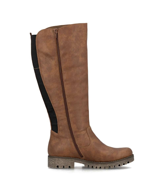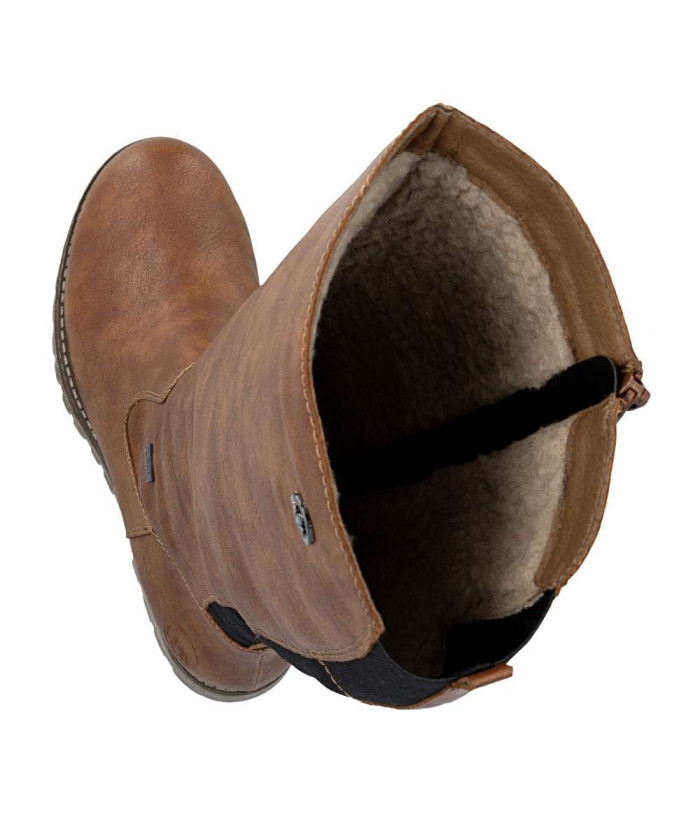 Les bottes marron RIEKER allient style intemporel et praticité pour les journées froides. Leur tige aux tons naturels est rehaussée de matériaux élastiques à l'arrière qui s'adaptent à la forme de votre pied, tandis que la membrane imperméable protège de l'humidité par mauvais temps. La fermeture éclair intérieure facilite l'enfilage et vous apprécierez le confort thermique de la doublure chaude et de la semelle intérieure souple. La semelle, dotée de la technologie Antistress, absorbe les chocs et augmente le confort à chaque pas. Adoptez le style RIEKER au quotidien, où la mode rencontre le confort maximal. Profitez de l'alliance d'un design moderne, d'une fabrication de qualité et de technologies qui garantissent un confort optimal à chaque pas.