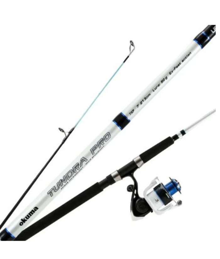 Le combo canne et moulinet Okuma Tundra Pro Spinning Combo comprend une canne en composite de graphite à la fois robuste et sensible, associée à un moulinet haut de gamme. La canne est dotée de la technologie de renforcement Ultimate Flex Reinforcement au niveau du scion et d'un emmanchement de type tip-over-talon pour une meilleure prise en main. Le moulinet est équipé d'un frein multidisque à rondelles en feutre huilé et d'un système d'entraînement à trois roulements à billes.