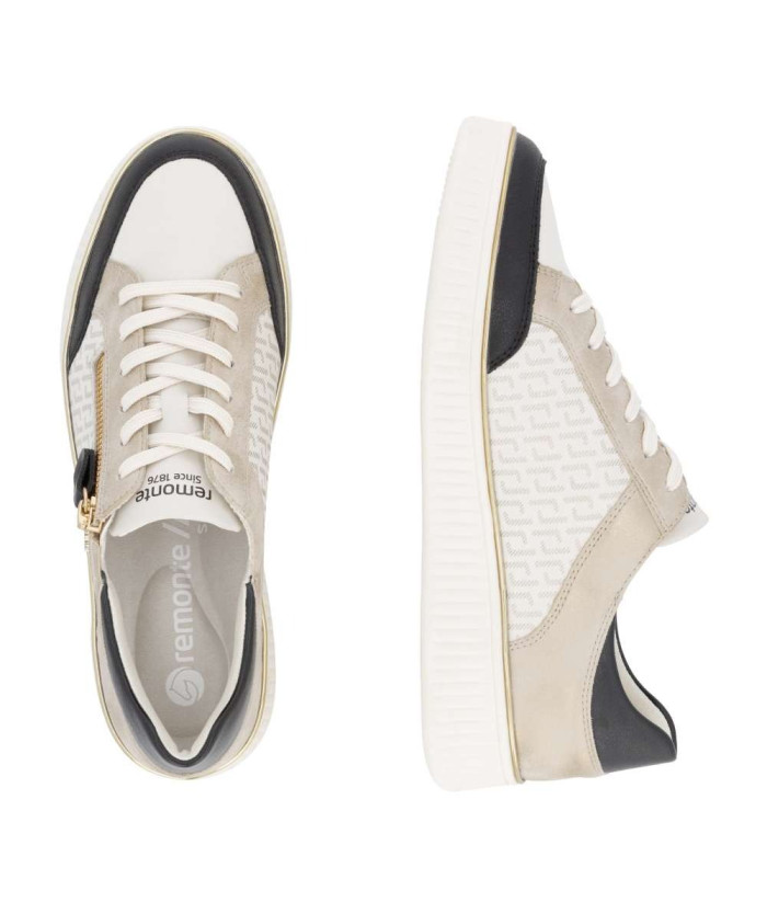 Modèle haut de gamme de la marque RIEKER, cette chaussure se distingue par une excellente combinaison de matériaux pour la tige. Ces baskets séduisent par leur design exceptionnel, une association unique de couleurs et de reflets pour un look original. Un motif discret sur la tige ajoute une touche décorative subtile sans nuire à leur élégance. La fermeture éclair sur le cou-de-pied facilite l'enfilage, tandis que le laçage permet un ajustement parfait pour un confort optimal. La semelle intérieure amovible et souple offre un confort à chaque pas, et la semelle extérieure blanche contrastante confère aux baskets une allure moderne et une stabilité fiable. Ce modèle de baskets est le choix idéal au quotidien, pour allier confort et style distinctif et raffiné.